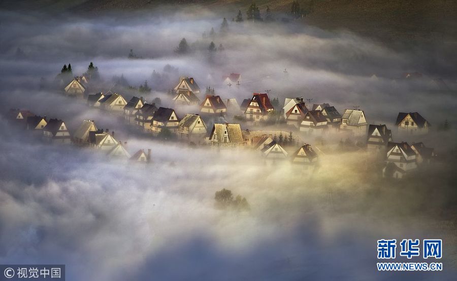 1月10日訊(具體拍攝時(shí)間不詳),波蘭皮耶尼內(nèi)山脈的一個(gè)村莊被濃霧籠罩,攝影師站在對面山上拍攝的景觀如童話世界一般,色彩繽紛的房子在濃霧中若隱若現(xiàn)仿若仙境。(圖片來源:視覺中國)