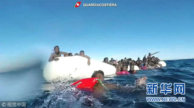 當(dāng)?shù)貢r間2018年1月6日上午,利比亞附近海域發(fā)生了一起非法移民船傾覆事故。在巡邏飛機發(fā)現(xiàn)該遇險船只后,周圍的意大利海岸警衛(wèi)隊及意大利海軍船只迅速駛近實施救援,成功救起80余人,同時發(fā)現(xiàn)了8名遇難者。據(jù)外媒報道,這艘小船從該國海岸出發(fā)時載有超過100人。(圖片來源:視覺中國)