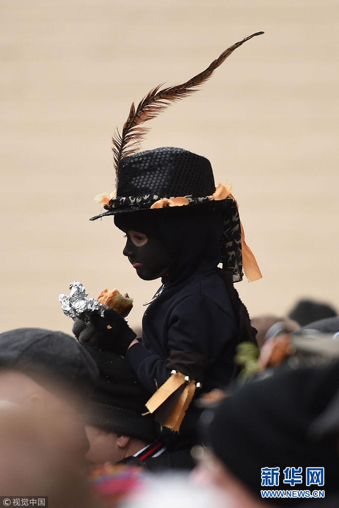 當(dāng)?shù)貢r間2018年1月13日,英國劍橋郡惠特爾西,民眾打扮成憨厚的“稻草熊”等各種形象,伴隨著樂隊的奏樂游行,慶祝第39屆惠特爾西“稻草熊”節(jié)。(圖片來源:視覺中國)