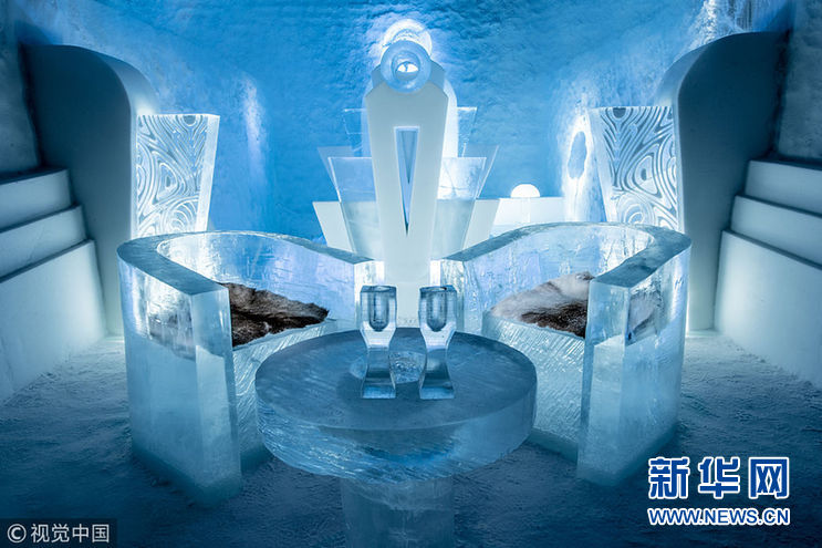 當?shù)貢r間2018年1月12日,瑞典朱卡斯亞維村,瑞典冰雪酒店已在今年冬季重新開放,來自17個國家的36位藝術(shù)家參與了設(shè)計。自1989年以來,酒店每年都會在位于北極圈以北200公里處的瑞典朱卡斯亞維村莊重建,位置靠近托爾納河河畔。今年,藝術(shù)家們使用3萬立方米的冰雪建造了冰雪酒店,用500噸晶瑩剔透的天然冰制作了玻璃和冰雪酒吧。酒店擁有35個設(shè)計獨特的豪華套房、一個冰雕禮堂和一個全新的兒童樂園。在主廳里,1000個手工拋光的冰晶被制作成引人注目的吊燈。在冰雕禮堂中,有200個手工雕刻的植物裝點著墻壁。(圖片來源:視覺中國)