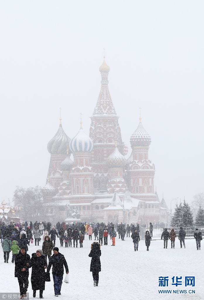 當(dāng)?shù)貢r間1月20日,俄羅斯莫斯科,民眾冒雪出行。 (圖片來源:視覺中國)