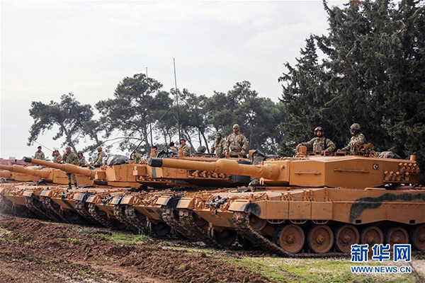 1月21日,在土耳其哈塔伊省與敘利亞邊境地區(qū),土軍地面部隊(duì)準(zhǔn)備開往敘利亞北部阿夫林。土耳其總理耶爾德勒姆21日宣布,土耳其軍隊(duì)當(dāng)天上午已進(jìn)入敘利亞邊境,展開對(duì)敘北部阿夫林的地面軍事行動(dòng)。 新華社發(fā)