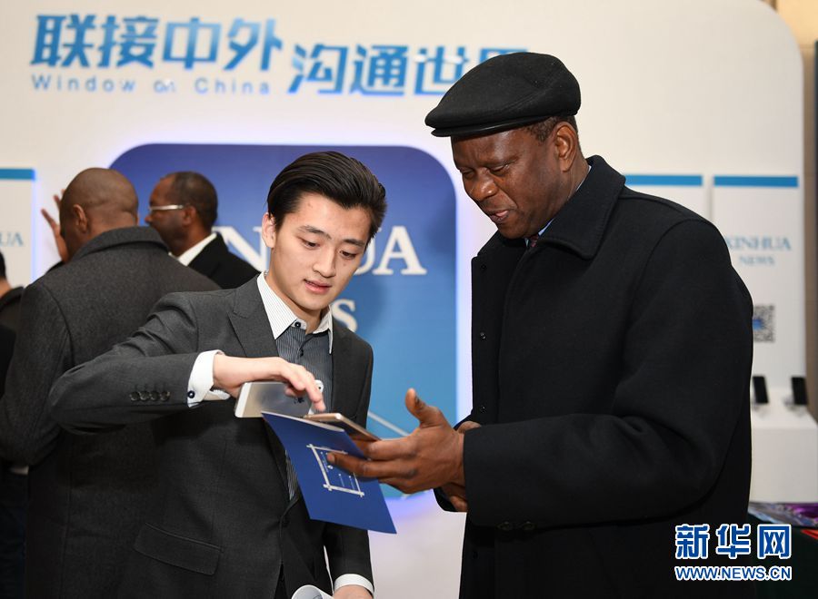 1月23日上午10:00,新華社英文客戶(hù)端上線(xiàn)發(fā)布會(huì)在總社大廈多功能廳舉行。圖為工作人員向嘉賓介紹新華社英文客戶(hù)端。新華社記者 李賀攝
