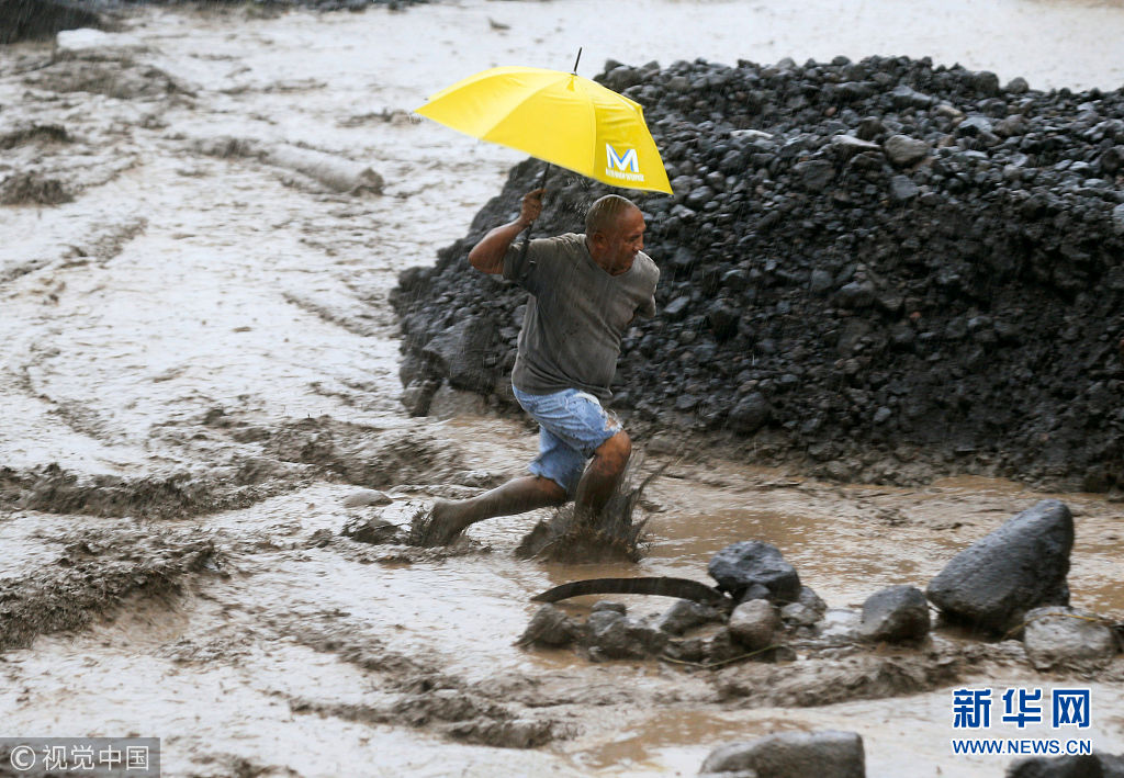 當?shù)貢r間2018年1月27日,菲律賓阿爾拜省,民眾穿過混合著火山灰的泥漿河。(圖片來源:視覺中國)