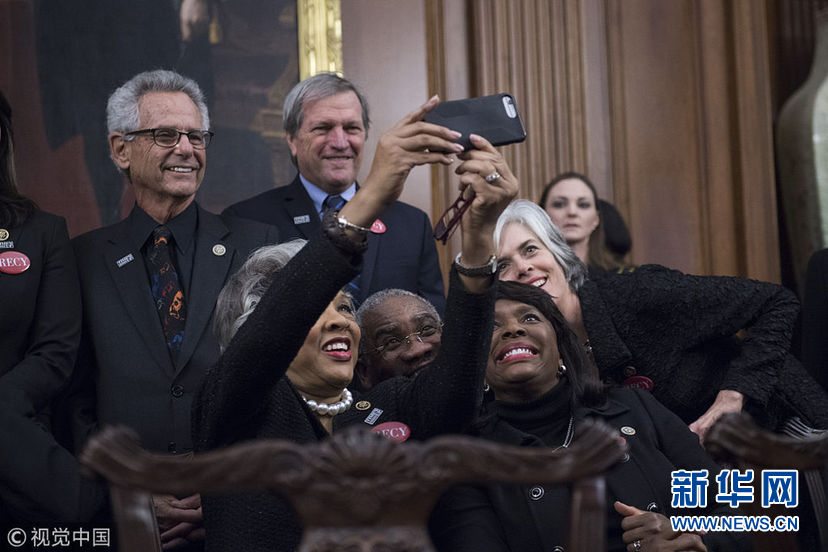 當(dāng)?shù)貢r(shí)間1月30日,美國華盛頓,民主黨國會(huì)議員和性侵幸存者一同穿黑衣現(xiàn)身國會(huì)大廈,聲援勇敢反對(duì)性騷擾和歧視的人們。眾議院民主黨人計(jì)劃穿黑衣出席特朗普的國情咨文演講,支持MeToo和TimesUp組織。 (圖片來源:視覺中國)