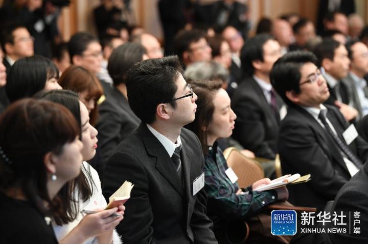 1月31日,新華社在東京舉行日本專線說明會。日本專線將于2月1日正式上線,為日本用戶提供文字、圖片、音視頻等多種形態(tài)的日文新聞產(chǎn)品。日本專線說明會會場內(nèi)觀眾在認(rèn)真聆聽。