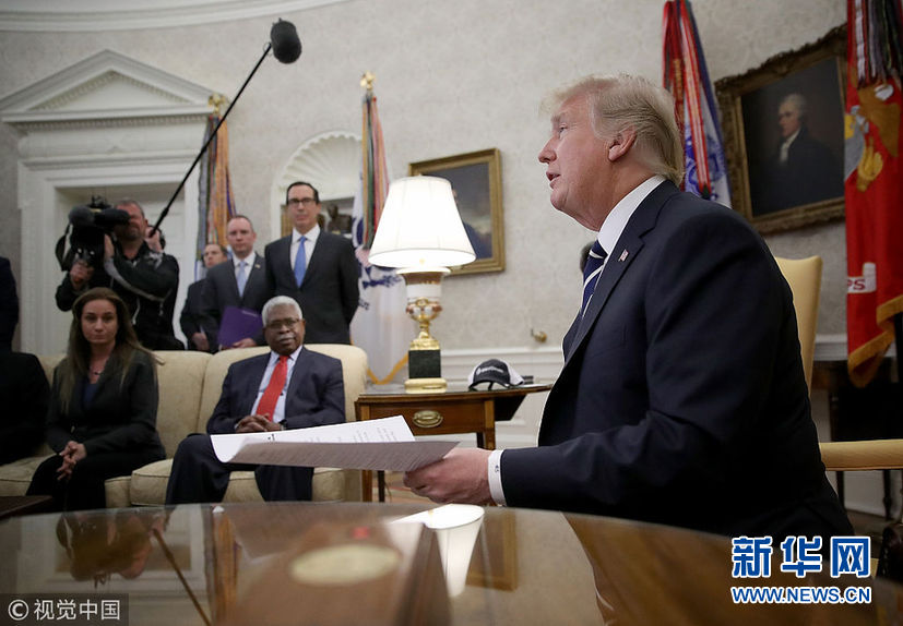 當?shù)貢r間1月31日,美國華盛頓,美國總統(tǒng)特朗普在白宮與公司雇員討論稅收改革問題。(圖片來源:視覺中國)