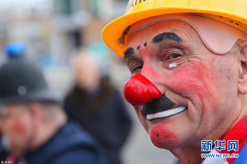 當地時間2月4日,英國倫敦,人們扮成小丑的模樣聚集在圣三一教堂,為英國“小丑之父”約瑟夫-格里馬爾迪(1778-1837)舉辦紀念會。(圖片來源:東方IC)