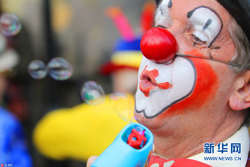 當(dāng)?shù)貢r(shí)間2月4日,英國(guó)倫敦,人們扮成小丑的模樣聚集在圣三一教堂,為英國(guó)“小丑之父”約瑟夫-格里馬爾迪(1778-1837)舉辦紀(jì)念會(huì)。(圖片來(lái)源:東方IC)
