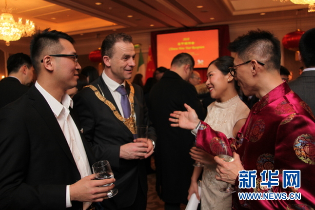 2月8日, 在愛(ài)爾蘭首都都柏林, 中愛(ài)嘉賓在中國(guó)駐愛(ài)爾蘭使館舉辦的春節(jié)招待會(huì)上交談。新華網(wǎng)發(fā)(張琪攝)