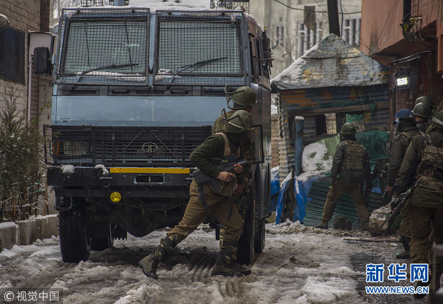 2月12日,印控克什米爾斯利那加,印度政府軍與疑似激進(jìn)分子展開槍戰(zhàn)。兩名持槍歹徒在他們的營地附近開火致一名印度準(zhǔn)軍事部隊士兵死亡。(圖片來源:視覺中國)