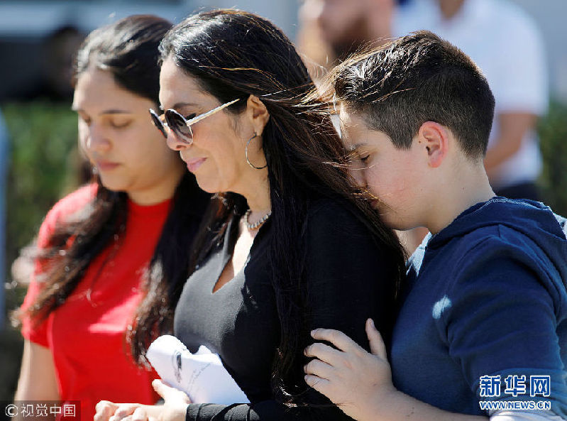 當(dāng)?shù)貢r(shí)間2018年2月15日,美國佛羅里達(dá)州波姆龐帕諾灘,民眾悼念槍擊案遇難者。當(dāng)?shù)貢r(shí)間14日下午2點(diǎn)25分左右,美國佛羅里達(dá)州南部帕克蘭一所高中發(fā)生槍擊案,目前已致至少17人死亡,多人受傷。(圖片來源:視覺中國)