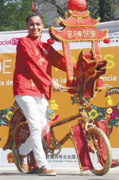 獲得大賽一等獎的作品是利用廢報紙在自行車上裝扮出的巨大“報紙犬”,狗年元素和綠色出行元素兼而有之,凸顯廢物利用的環(huán)保主題。三人創(chuàng)作團隊中的貝尼托告訴本報記者,他們經(jīng)營一家以紙板、報紙、塑料等為原料制作手工藝品的小型公司,這次的作品耗時兩周。他說:“與去年相比,今年參加比賽的人更多、新點子也更多了,這樣的大型活動讓更多墨西哥人對中國文化產(chǎn)生興趣。”