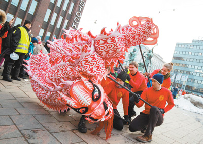 2月15日,第十二屆“歡樂春節(jié)·赫爾辛基廟會”在芬蘭首都赫爾辛基舉行,吸引大量民眾參加。圖為當?shù)厝嗽谖椠垺P氯A社發(fā)