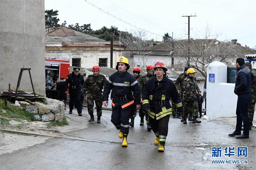 3月2日,在阿塞拜疆首都巴庫,消防人員趕往火災(zāi)現(xiàn)場(chǎng)救援。 新華社發(fā)(巴巴耶夫攝)