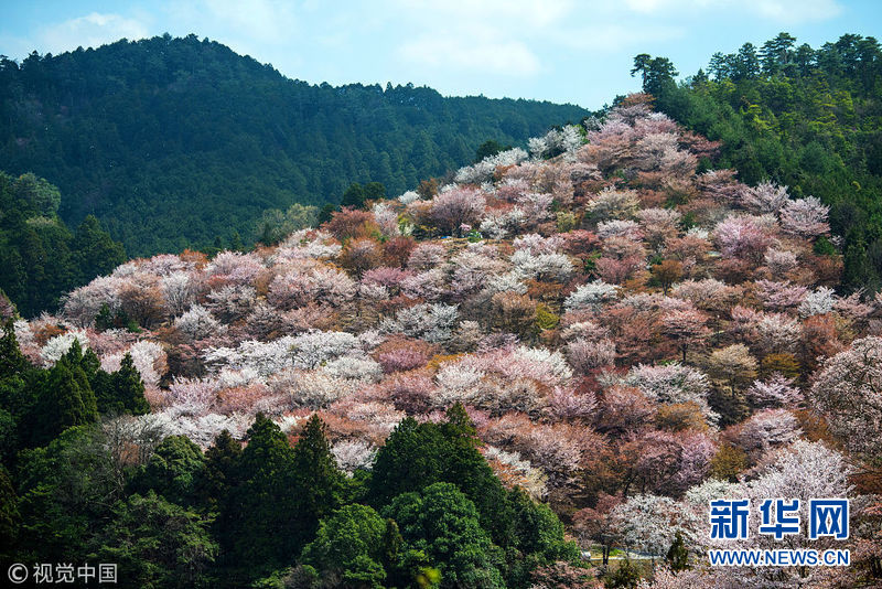 4月3日,日本奈良吉野,當(dāng)?shù)貦鸦ㄊ⒎牛姸嘤慰颓皝碛^賞。(圖片來源:視覺中國)