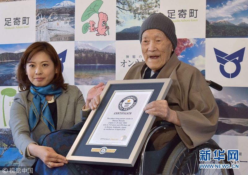 4月10日,日本足寄,日本男子Masazo Nonaka以112歲259天的年齡,獲得吉尼斯認(rèn)證的世界目前在世年齡最長(zhǎng)的男性。 (圖片來源:視覺中國(guó))