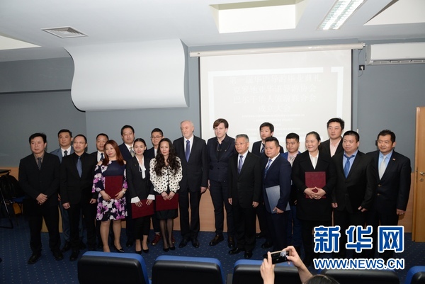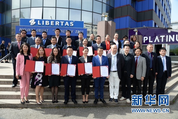 4月11日,首批通過克羅地亞導(dǎo)游職業(yè)資格考試的中國導(dǎo)游與歐洲地區(qū)華人旅游業(yè)者代表在薩格勒布合影。新華社記者高磊 攝?