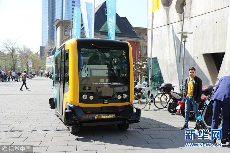 4月17日,德國法蘭克福,法蘭克福應(yīng)用科學(xué)大學(xué)測試自動駕駛擺渡巴士。(圖片來源:視覺中國)