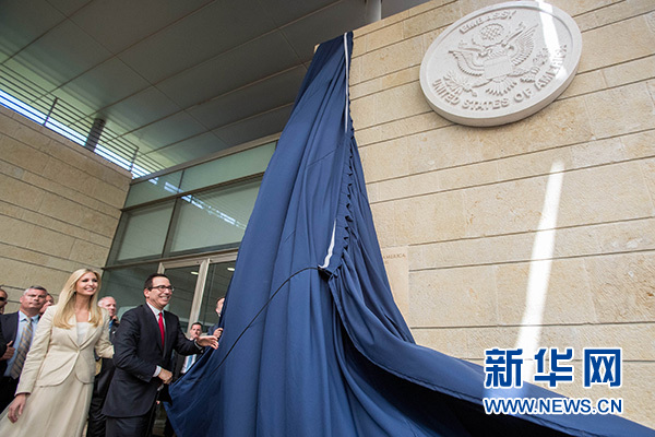 數(shù)百名官員參加了當(dāng)天的美國新使館開館儀式。美國副國務(wù)卿沙利文率領(lǐng)美方代表團(tuán)出席儀式,其中包括美國總統(tǒng)特朗普的女兒伊萬卡和她的丈夫庫什納,以及美財政部長姆努欽。