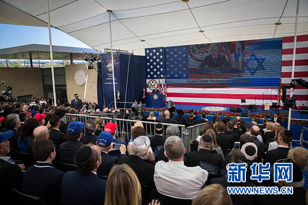 特朗普通過視頻發(fā)表致辭稱,美國駐以使館從特拉維夫遷至耶路撒冷是一件早就該做的事。他宣稱,美國仍“致力于促成(以色列和巴勒斯坦之間的)持久和平協(xié)議”。