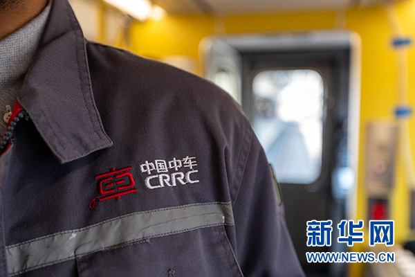 這是5月15日在美國馬薩諸塞州梅德福德惠靈頓站拍攝的中車長客為波士頓橙線地鐵“量身訂制”的首批車輛上中車長客員工制服上的標識。新華社記者 李木子 攝