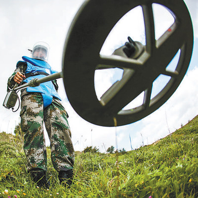 中國(guó)維和部隊(duì)軍人在黎巴嫩南部進(jìn)行清排探測(cè)作業(yè)。資料照片(新華社發(fā))