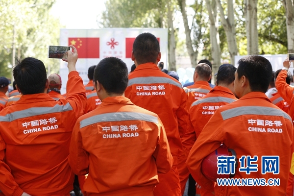 開工儀式上的中國路橋工人。新華網(wǎng)發(fā)
