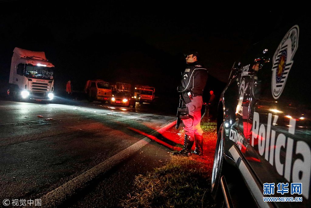 當?shù)貢r間2018年5月26日,巴西圣貝爾納多杜坎普,卡車司機駕車封堵高速公路,抗議油價上漲。(圖片來源:視覺中國)