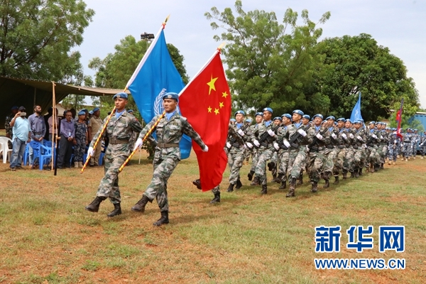在隨后舉行的閱兵儀式上,中國維和部隊派出23名工兵組成的方隊。他們踏著雄壯的步伐,肩扛和平的旗幟,整齊地走過閱兵臺,展現了中國人民解放軍“威武之師、文明之師、勝利之師”的良好形象,受到聯(lián)合國在場人員高度評價。