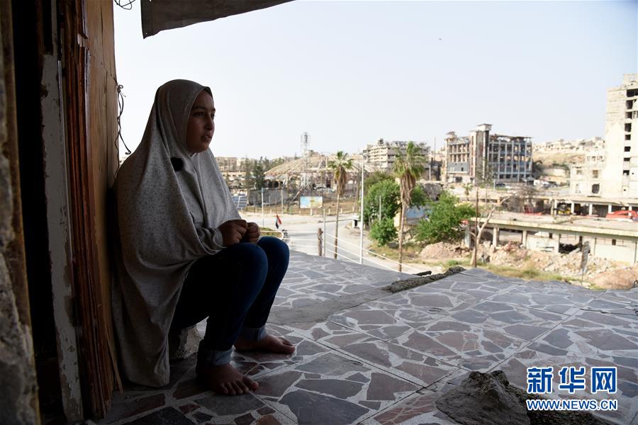 5月6日,在敘利亞阿勒頗,阿明娜坐在沒有圍欄的陽臺(tái)上。新華社發(fā)(胡馬姆·謝赫·阿里 攝)
