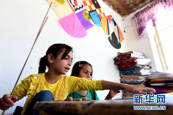 5月29日,在阿富汗首都喀布爾,希杰蘭(左)和妹妹在作坊內(nèi)扎風(fēng)箏。對(duì)于阿富汗這個(gè)飽經(jīng)戰(zhàn)火洗禮的國度,風(fēng)箏是人們難得的娛樂品。不少當(dāng)?shù)睾⒆佑H手制作風(fēng)箏貼補(bǔ)家用,可謂窮人的孩子早當(dāng)家。九歲的希杰蘭過去幾年共制作了上萬個(gè)風(fēng)箏。今年“六一”國際兒童節(jié)來臨之際,記者一行來到希杰蘭與家人位于喀布爾郊區(qū)的風(fēng)箏作坊。在略顯簡陋的房間內(nèi),大大小小、五顏六色的紙張隨處可見,不足20平方米的作坊在陽光下如同一個(gè)彩色世界。新華社記者 代賀 攝