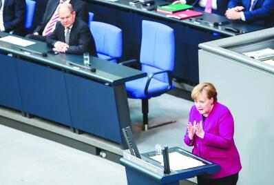 今年3月,德國總理默克爾在聯(lián)邦議院表示,將在必要時(shí)對(duì)美國加征鋼鋁關(guān)稅的政策采取“明確的反制措施”。新華社發(fā)
