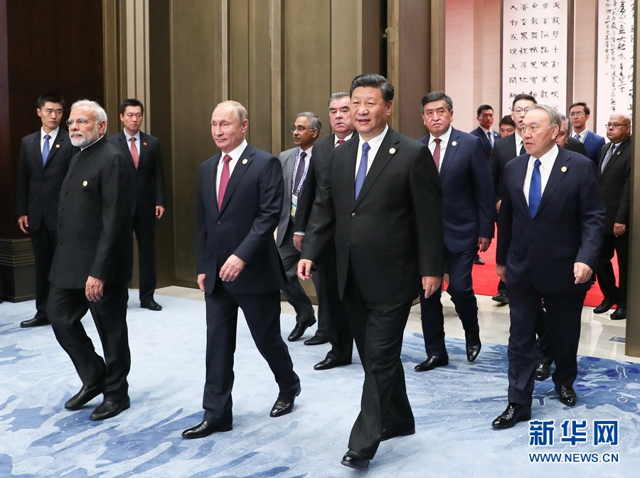 新華社青島6月10日電(記者孫奕、溫馨)上海合作組織成員國元首理事會第十八次會議小范圍會談10日在青島國際會議中心舉行。國家主席習(xí)近平主持。印度總理莫迪、哈薩克斯坦總統(tǒng)納扎爾巴耶夫、吉爾吉斯斯坦總統(tǒng)熱恩別科夫、巴基斯坦總統(tǒng)侯賽因、俄羅斯總統(tǒng)普京、塔吉克斯坦總統(tǒng)拉赫蒙、烏茲別克斯坦總統(tǒng)米爾濟(jì)約耶夫出席會議。各成員國領(lǐng)導(dǎo)人就上海合作組織發(fā)展以及重大國際和地區(qū)問題交換意見。