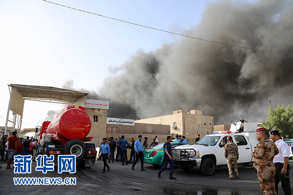 6月10日,在伊拉克首都巴格達,伊拉克安全人員和消防人員在火災現(xiàn)場工作。新華社發(fā)(哈利勒·達伍德 攝)