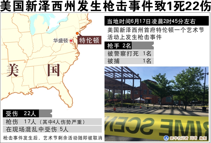 槍擊事件于當?shù)貢r間凌晨2時45分左右發(fā)生在一個藝術節(jié)活動上。特倫頓所在的默瑟縣檢察官安杰洛·奧諾弗里告訴媒體,事件中有兩名槍手,其中一名槍手被現(xiàn)場的警察打死,另一人被逮捕。