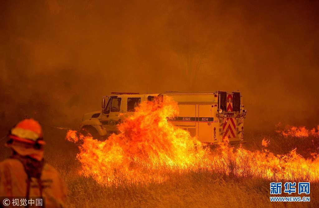 當(dāng)?shù)貢r(shí)間2018年7月1日,美國(guó)加州克利爾萊克奧克斯,加州萊克縣“波尼”(Pawnee)大火持續(xù)蔓延,現(xiàn)場(chǎng)烈火熊熊,過(guò)火面積達(dá)3000英畝(約合12150公頃)。(圖片來(lái)源:視覺中國(guó))