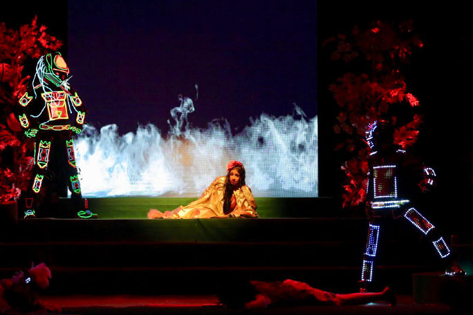 這部話劇演出時(shí)間長達(dá)85分鐘,參演人員多達(dá)40人。拉沃德不僅邀請(qǐng)了幾位好朋友一起參演,還聘請(qǐng)了多位專業(yè)男女演員和舞蹈演員,而她本人則擔(dān)綱主角。
