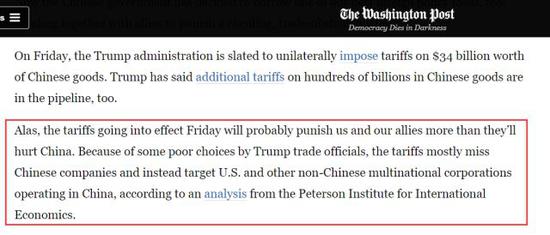 這或許與美國《華盛頓郵報》提到的另一件事有關(guān),即美國這次對中國發(fā)動貿(mào)易戰(zhàn)所波及的中國產(chǎn)品中,有不少其實并不是中國自己的企業(yè)生產(chǎn)的,而是美國或其他西方國家在華的分部的產(chǎn)品。