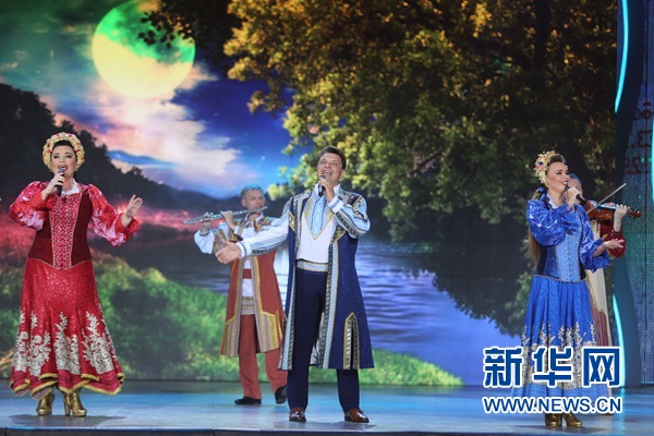 演員們在“斯拉夫巴扎”國際藝術(shù)節(jié)上表演。新華社者 魏忠杰攝