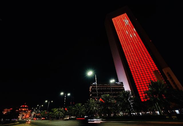 2018年7月18日夜晚拍攝的阿布扎比國家石油公司大樓。新華社記者 鄭開君攝