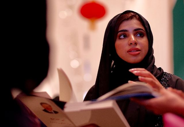 阿聯(lián)酋讀者在中國圖書展銷周期間相互交流。新華社記者 鄭開君攝
