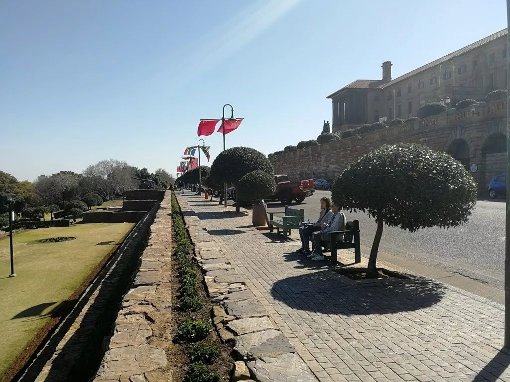 按照以往國(guó)事訪問的慣例,南非總統(tǒng)將在聯(lián)邦大廈廣場(chǎng)為習(xí)近平主席舉行隆重歡迎儀式。在習(xí)近平主席抵達(dá)的前幾天,聯(lián)邦大廈前的道路上已經(jīng)掛滿了中國(guó)和南非兩國(guó)國(guó)旗。