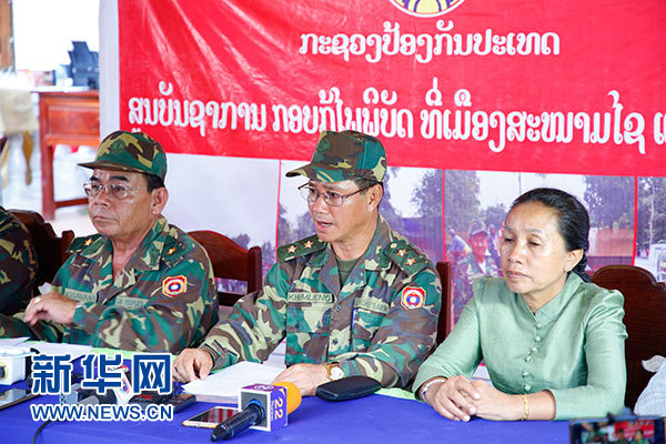 7月28日,老撾人民軍總參謀部副總參謀長、潰壩事故救援總指揮坎良·烏塔凱山(中)在災(zāi)區(qū)薩南賽縣舉行的救援情況發(fā)布會上說,截至當晚,潰壩事故的救援力量共發(fā)現(xiàn)8具遇難者遺體,仍有123人生死不明。新華社發(fā)