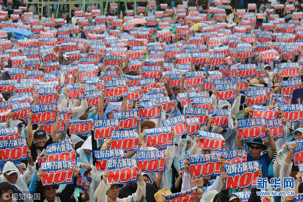 當?shù)貢r間2018年8月11日,日本沖繩縣約7萬民眾8月11日在那霸市舉行大規(guī)模集會,反對駐日美軍將普天間基地遷往名護市邊野古地區(qū),要求駐日美軍放棄在邊野古地區(qū)新建基地并立即關閉普天間機場。當天,日本東京都、大阪府、福岡、北海道縣等地民眾也同時舉行集會和游行,抗議日本政府推進邊野古地區(qū)填海施工。(圖片來源:視覺中國)