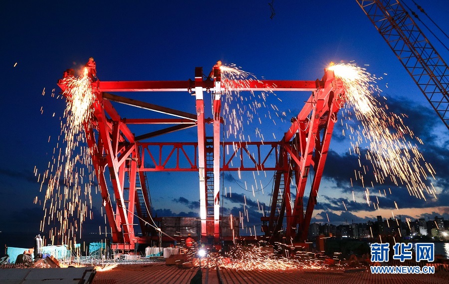 中國(guó)援建的中馬友誼大橋2018年8月30日晚正式開(kāi)通。中馬友誼大橋是兩國(guó)在共建21世紀(jì)海上絲綢之路領(lǐng)域的標(biāo)志性項(xiàng)目。大橋全長(zhǎng)2千米,連通馬爾代夫首都馬累和機(jī)場(chǎng)島,設(shè)計(jì)使用壽命100年。大橋建成后,環(huán)馬累生活和居住圈將形成,有助于疏解馬累島居住壓力,游客則能通過(guò)陸路實(shí)現(xiàn)馬累與機(jī)場(chǎng)島之間的快速往返。這是2017年2月4日拍攝的建設(shè)中的中馬友誼大橋的資料照片。 新華社發(fā)(杜才良攝)