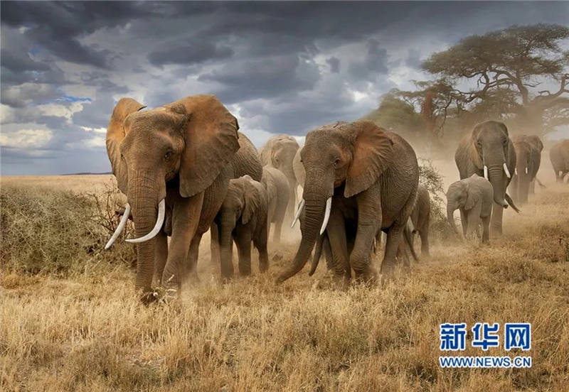 奔跑的象群。新華網(wǎng)發(fā) 喻惠平攝
