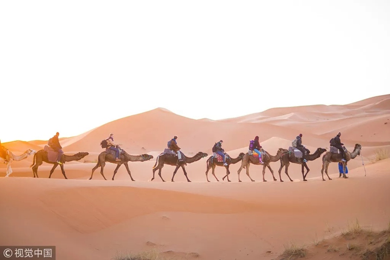 沙漠里的駝隊(duì)。