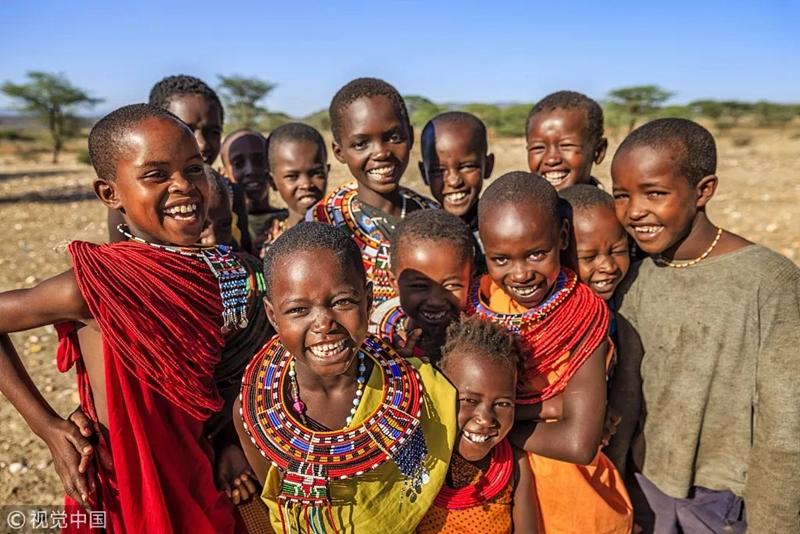 一群快樂的肯尼亞兒童。