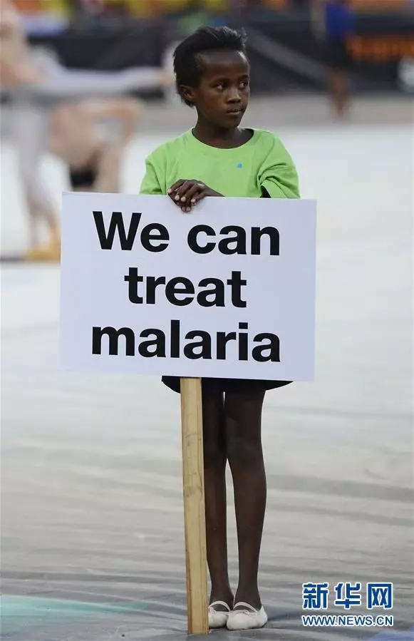 在南非約翰內(nèi)斯堡,一名女孩手舉抗擊瘧疾的標(biāo)語(yǔ)牌。新華社/法新